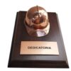 CASCO DE COBRE EN BASE DE MADERA, PLACA GRABADA