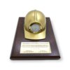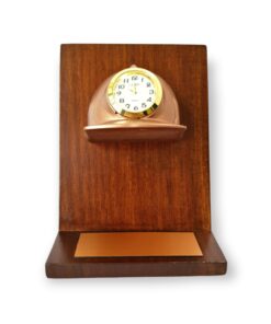 MEDIO CASCO DE RESINA CON RELOJ, BASE DE MADERA, PLACA GRABADA