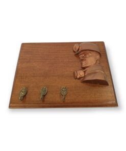 PORTALLAVES CON ROSTRO DE MINERO COBRIZADO , PLACA GRABADA
