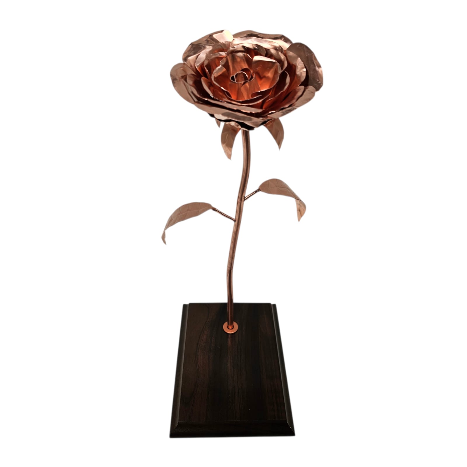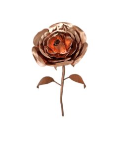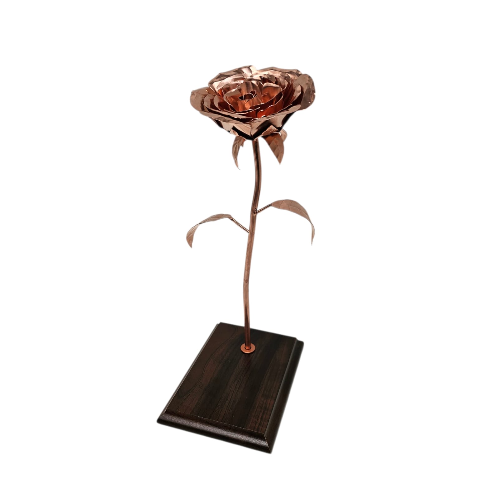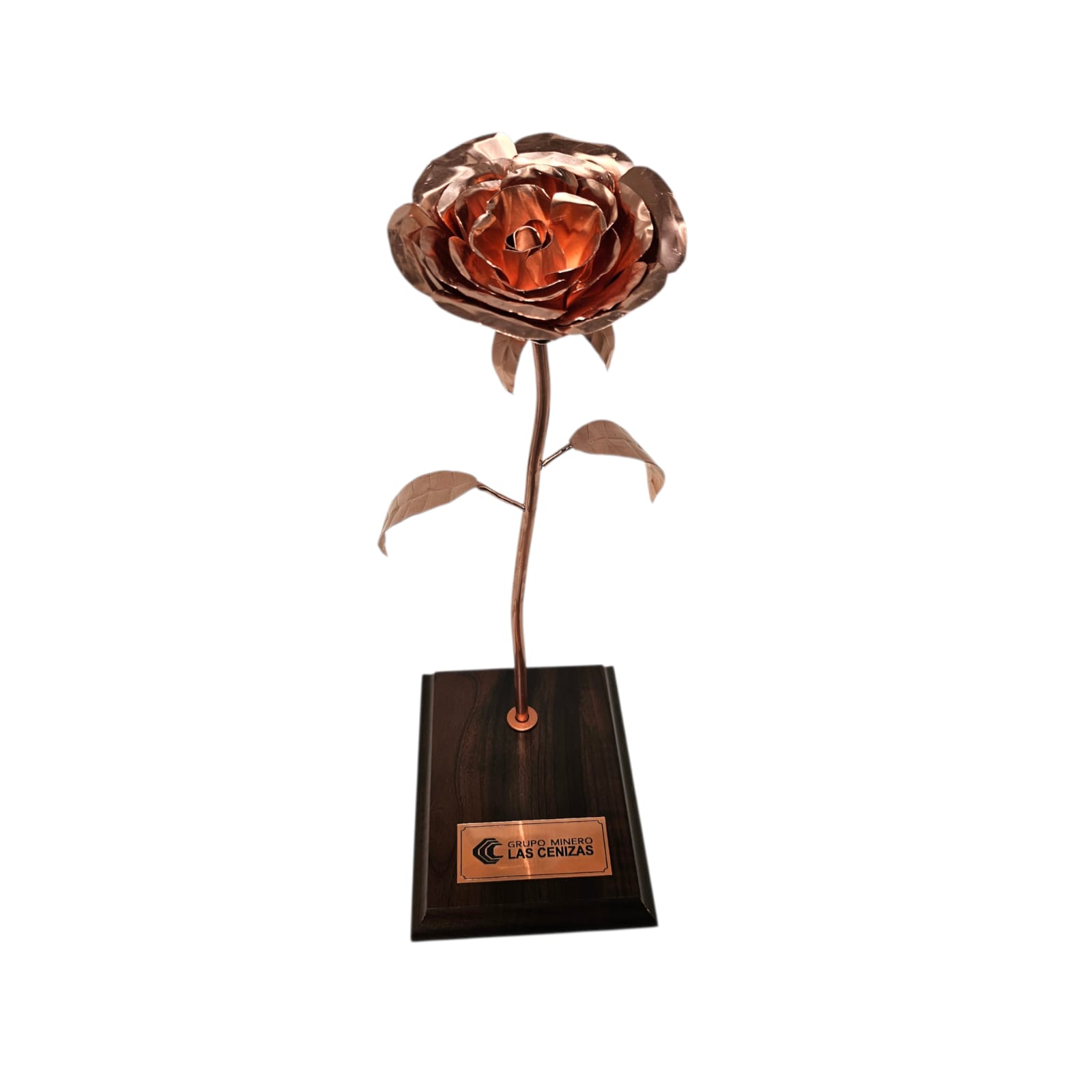 Elegante rosa de cobre 100% artesanal, fabricada completamente en cobre y montada sobre base de madera con placa grabada personalizada. Un regalo único, duradero y simbólico, ideal para aniversarios, reconocimientos corporativos o fechas especiales. Fabricación a pedido.